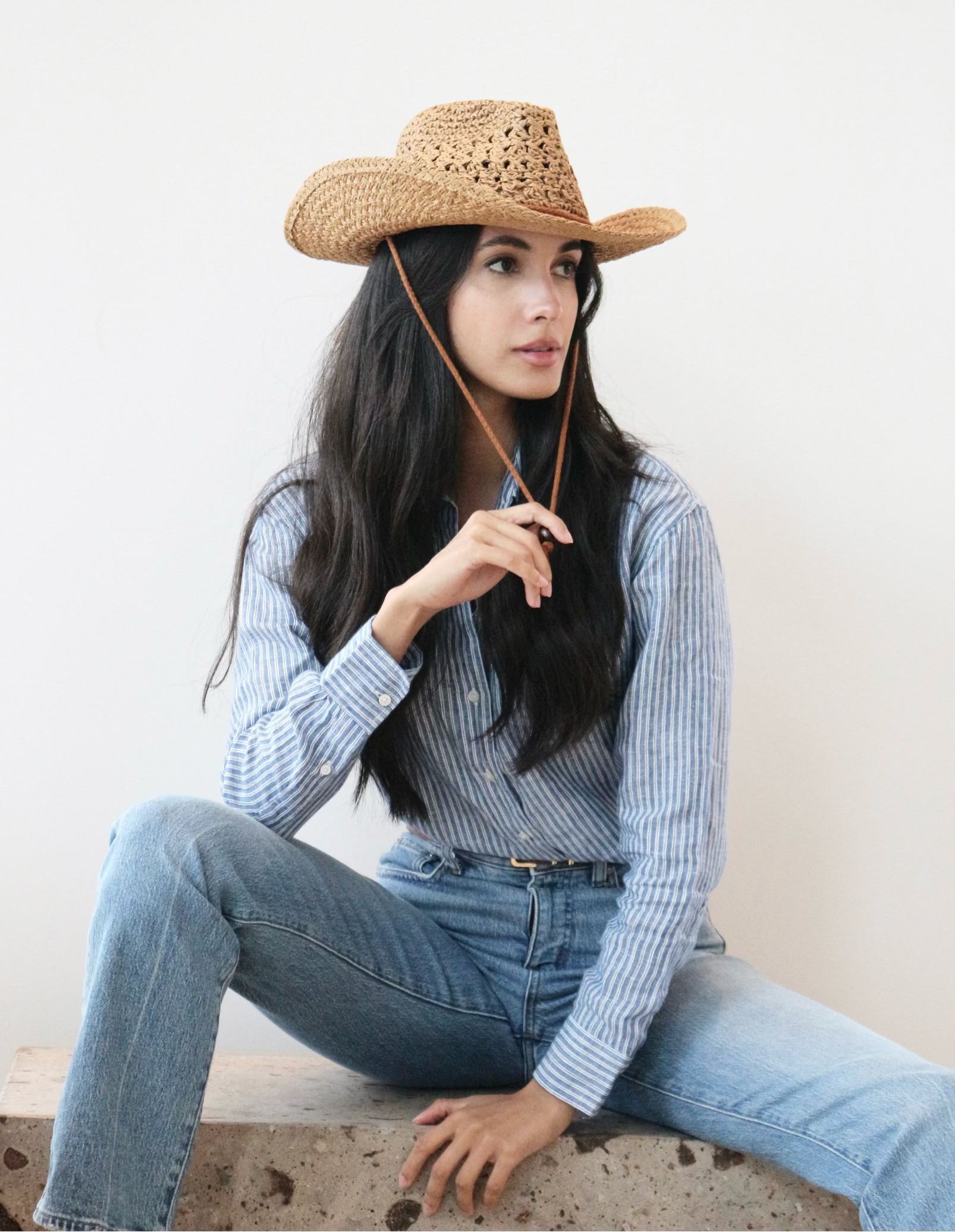 Natural fibers may settle during transit — a touch of steam brings your hat or bag back to perfect form. Explore our care guide for simple steps to restore its shape.
